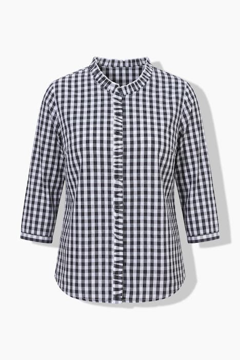 Bluse, Karomuster, Rüschen, Stehkragen, 3/4-Arm