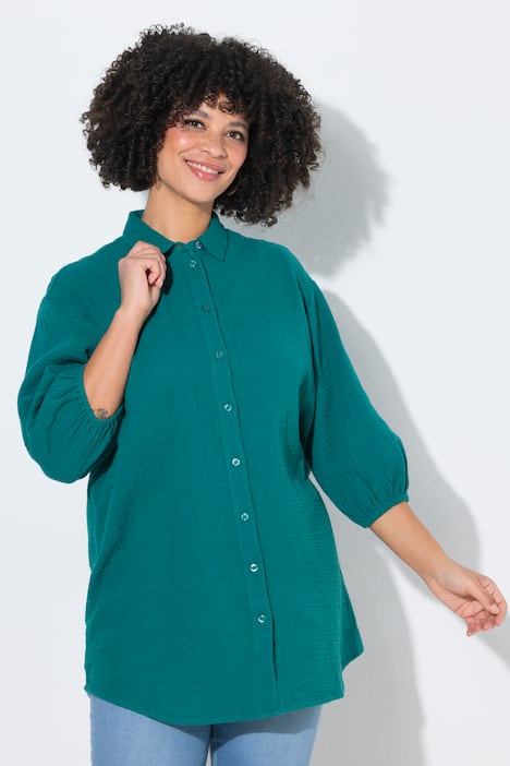 Hemdbluse, oversized, Musselin, 3/4-Ärmel