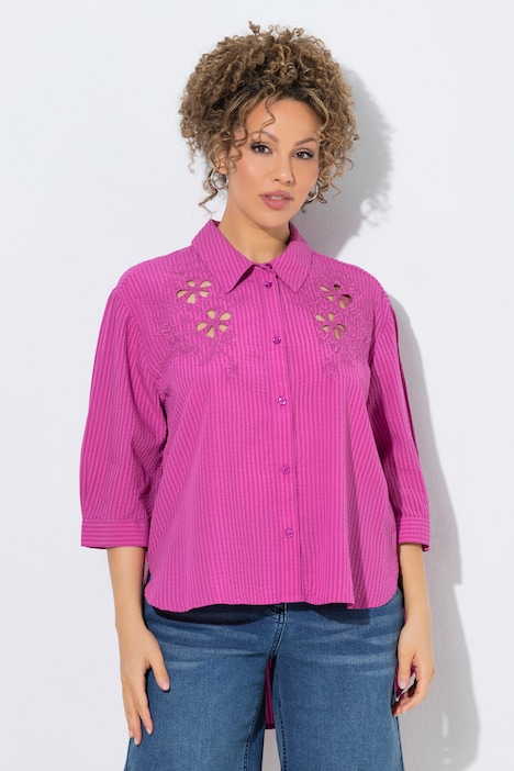 Hemdbluse, Seersucker, Stickerei, Hemdkragen, 3/4-Arm
