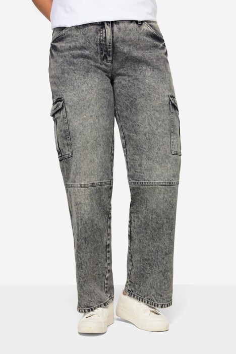 Cargojeans, Straight Fit, modischen bleached und mit seitlichen Cargotaschen. Teilelastischer Bund mit Gürtelschlaufen, Knopf und Zipper. 4 Taschen.
