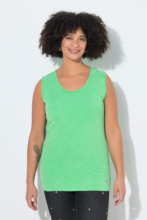 Top, körpernahe, ärmellose Passform, aus weichem Jersey mit Fransenkanten und Rundhalsausschnitt.